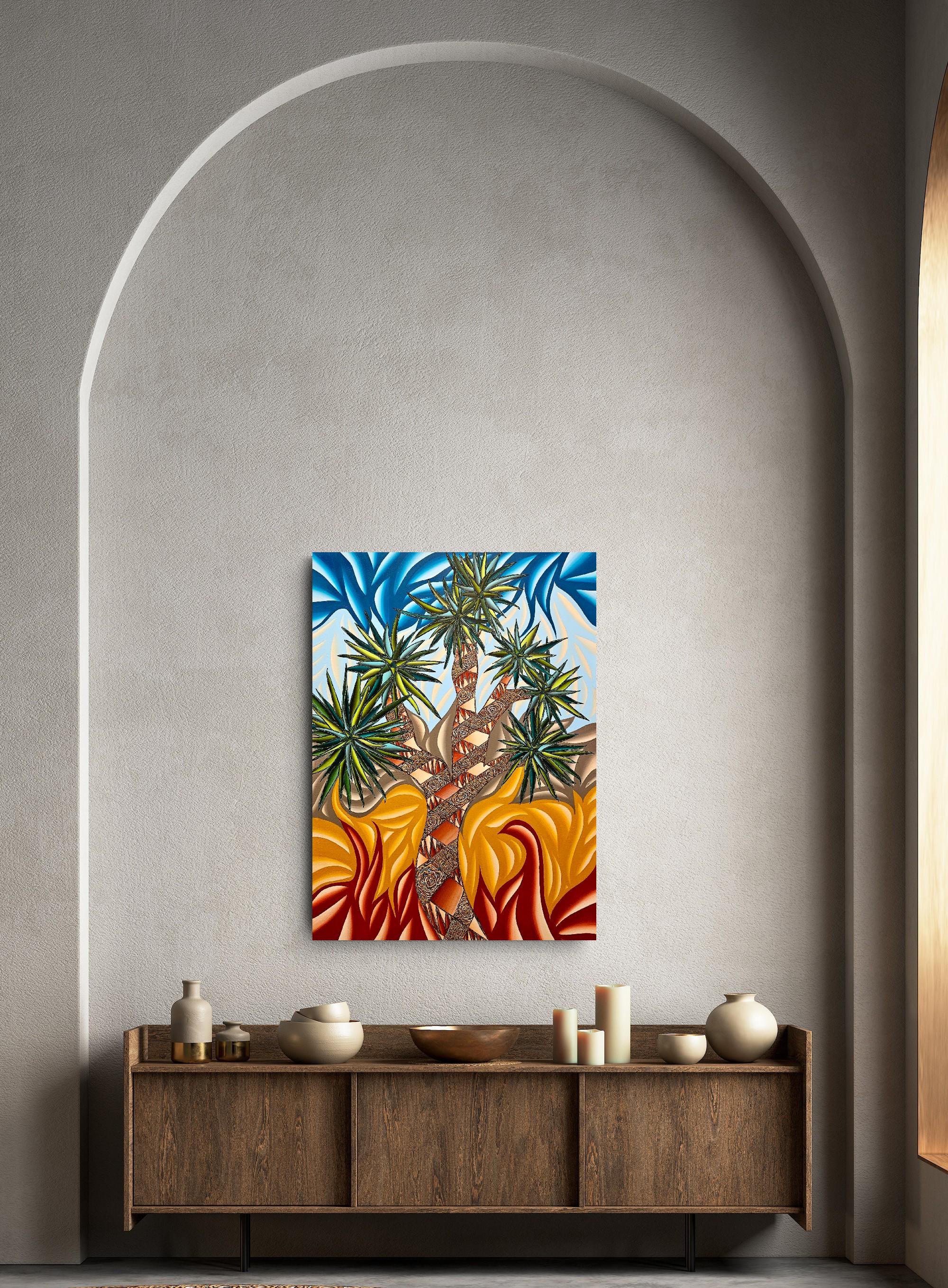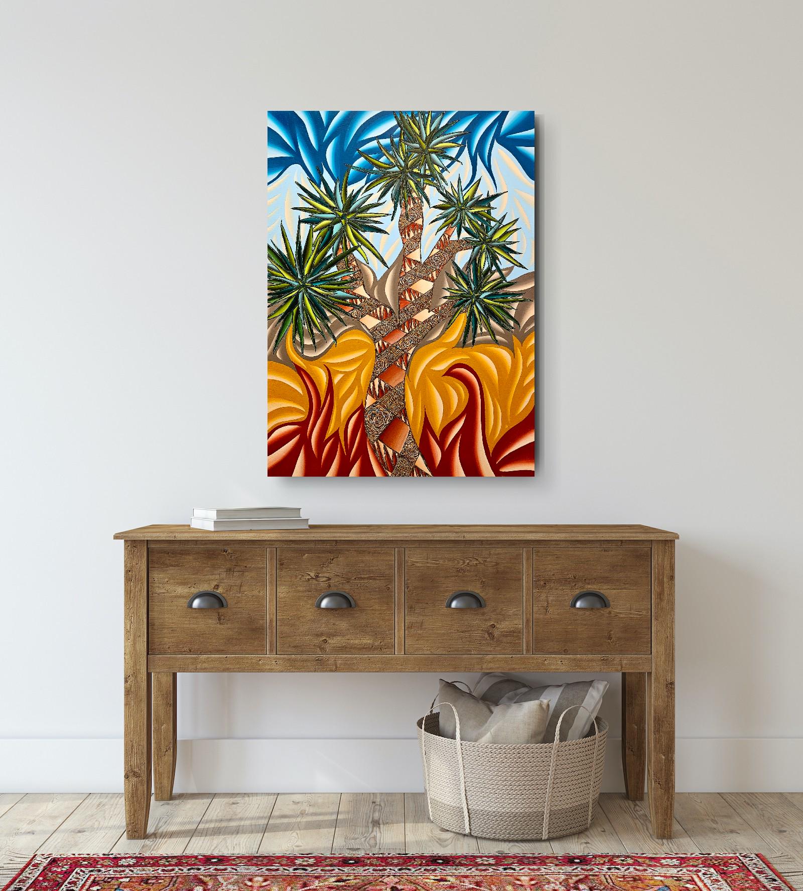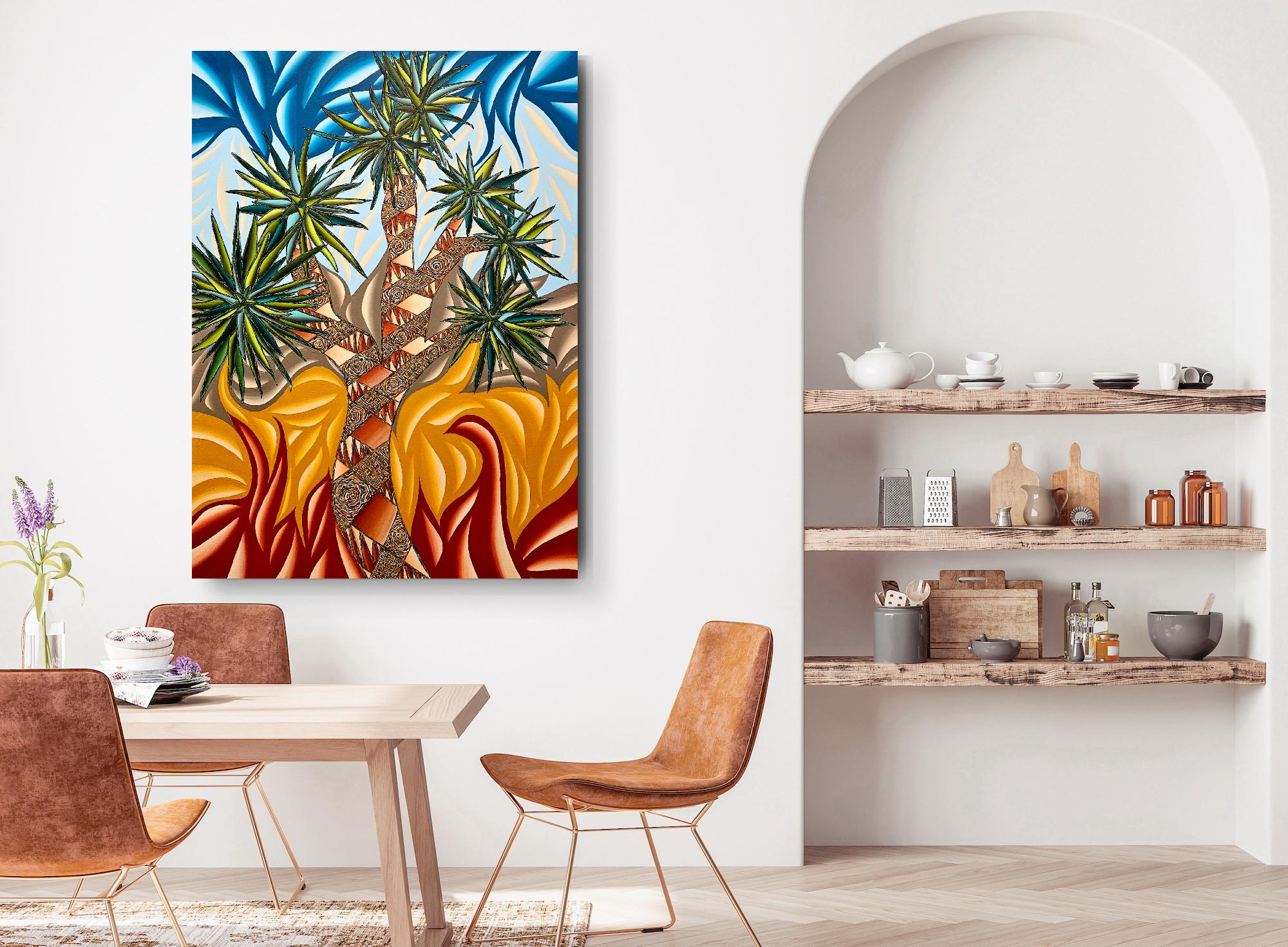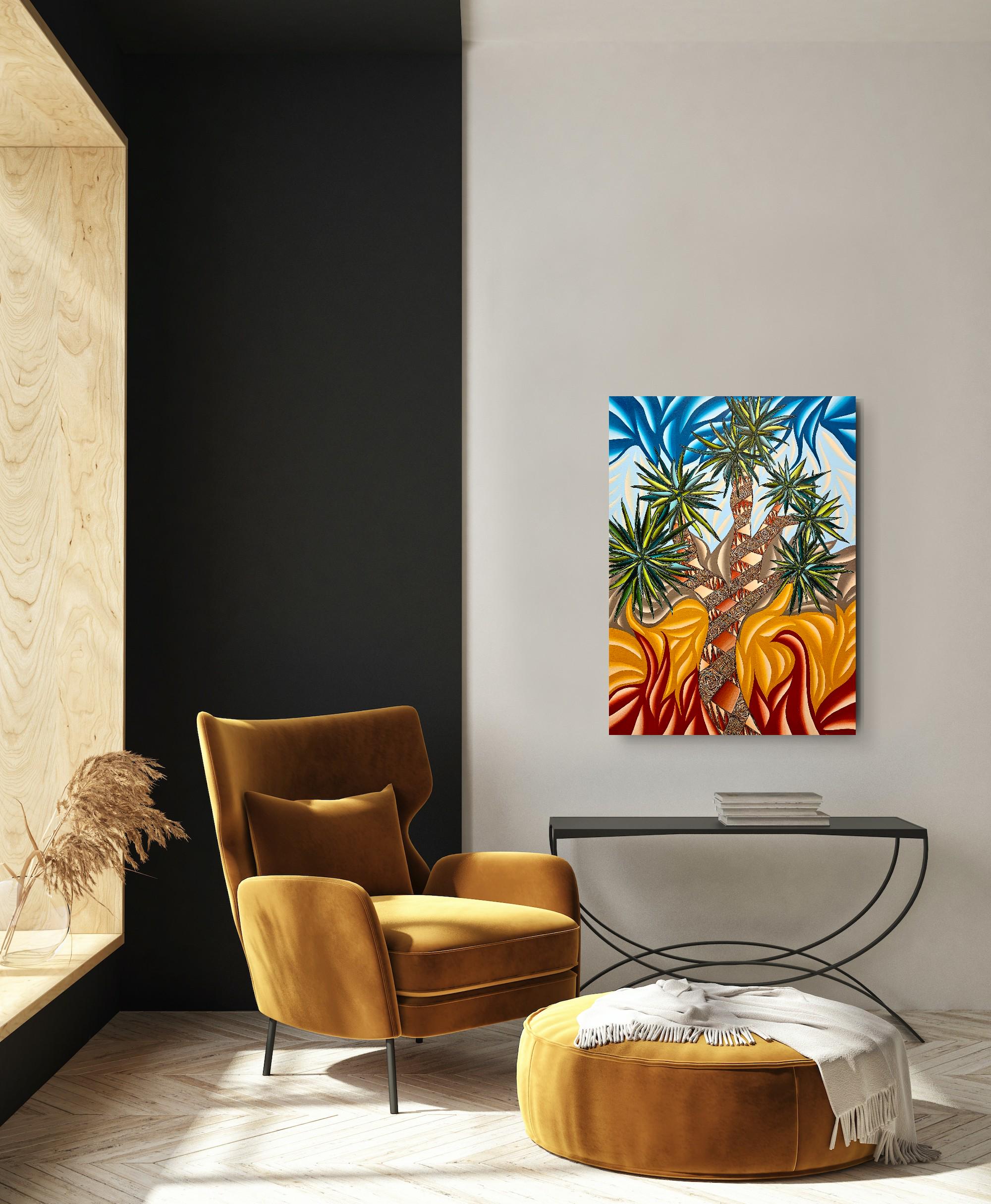 - **Subject & Theme**: A cinematic Joshua Tree motif reimagined through abstracted forms, celebrating resilience, endurance, and the surreal beauty of the desert.