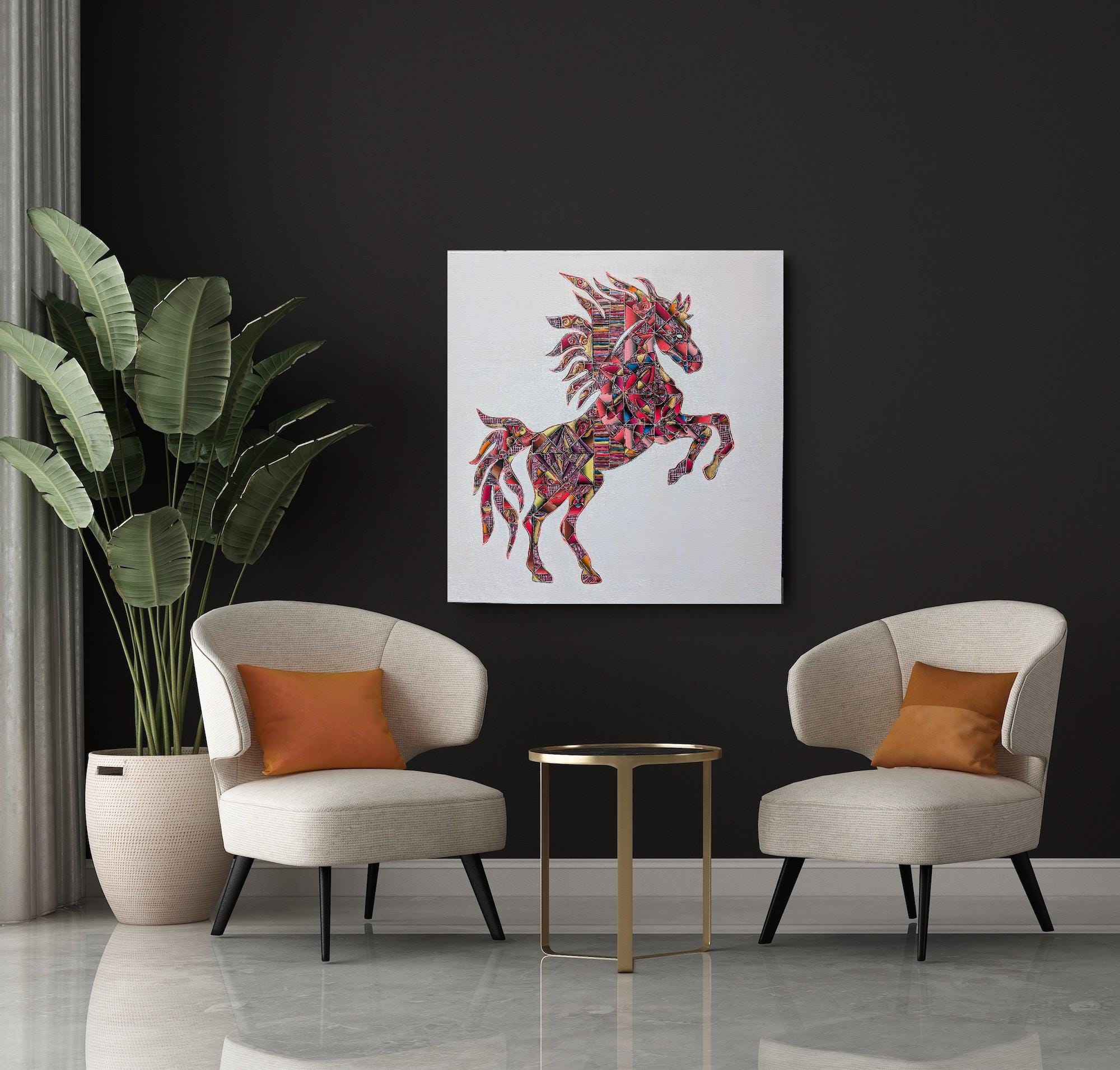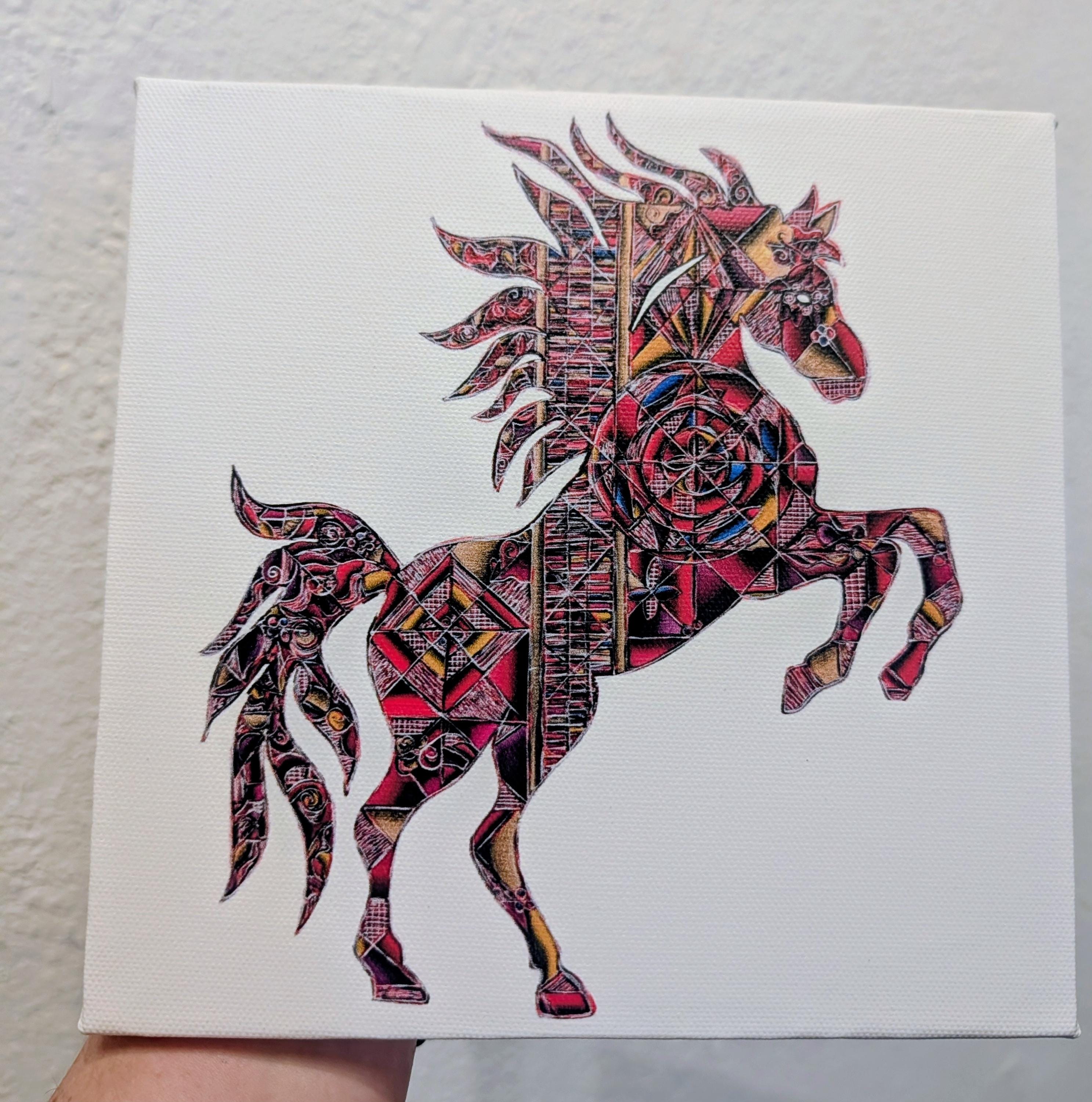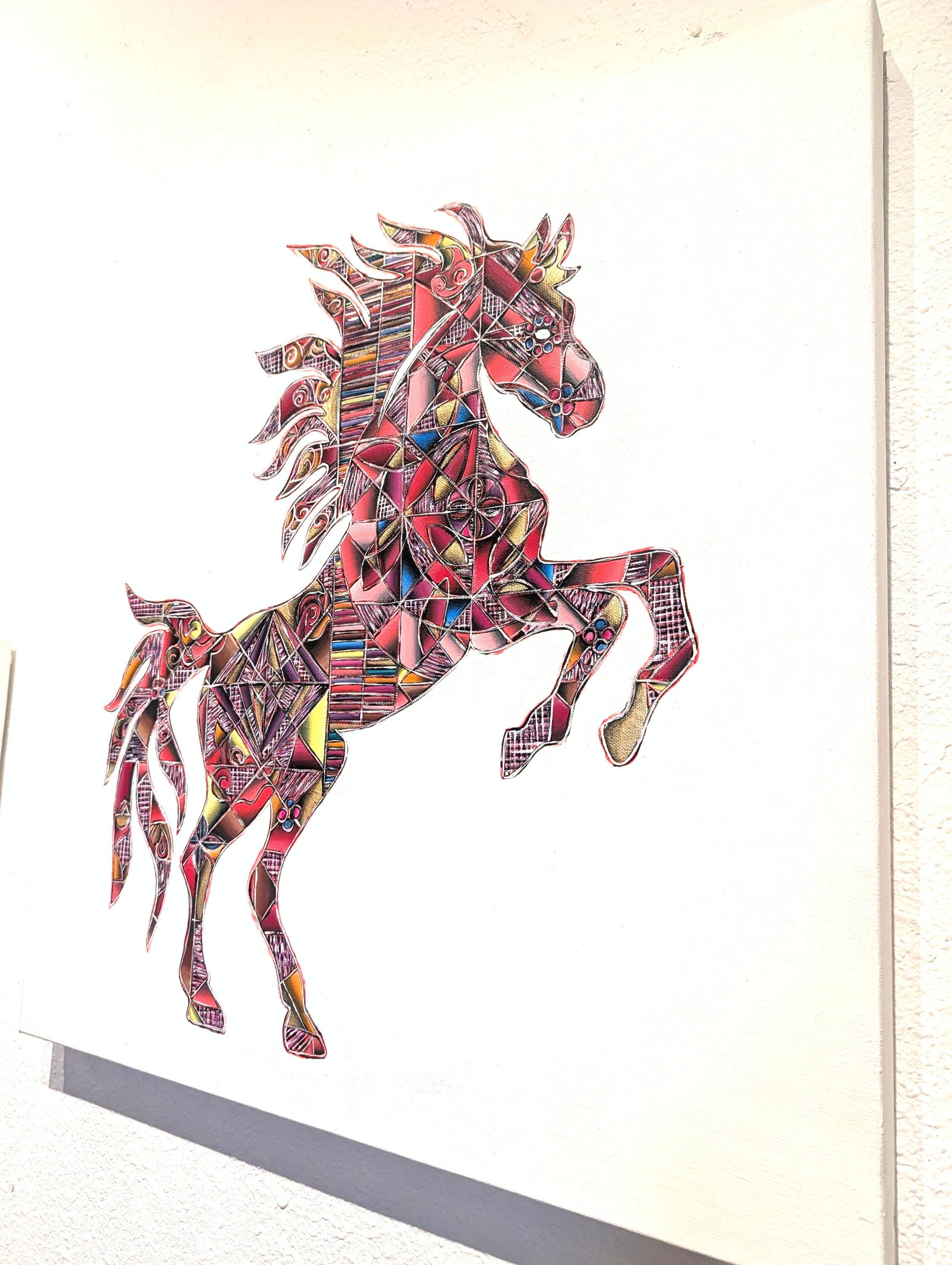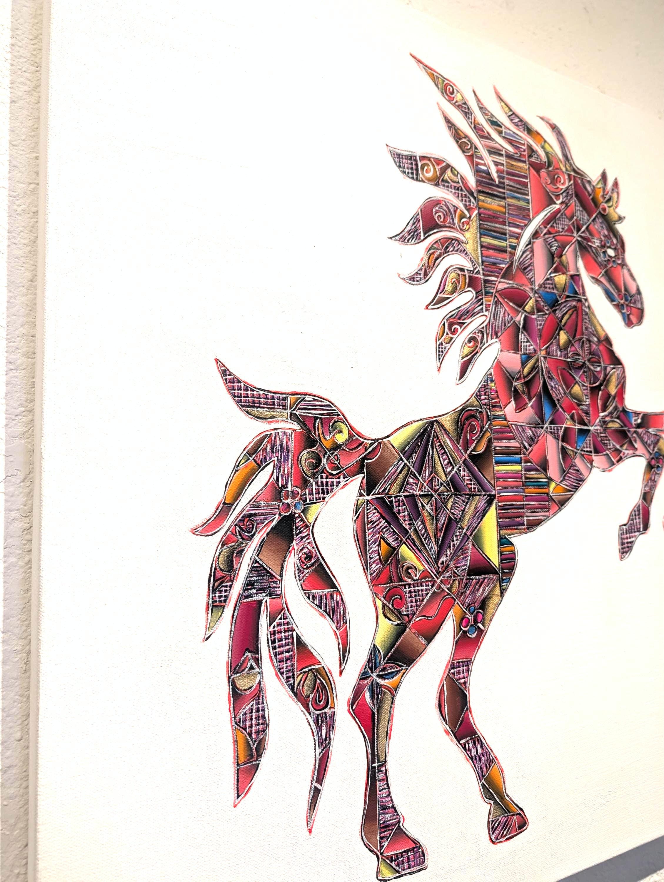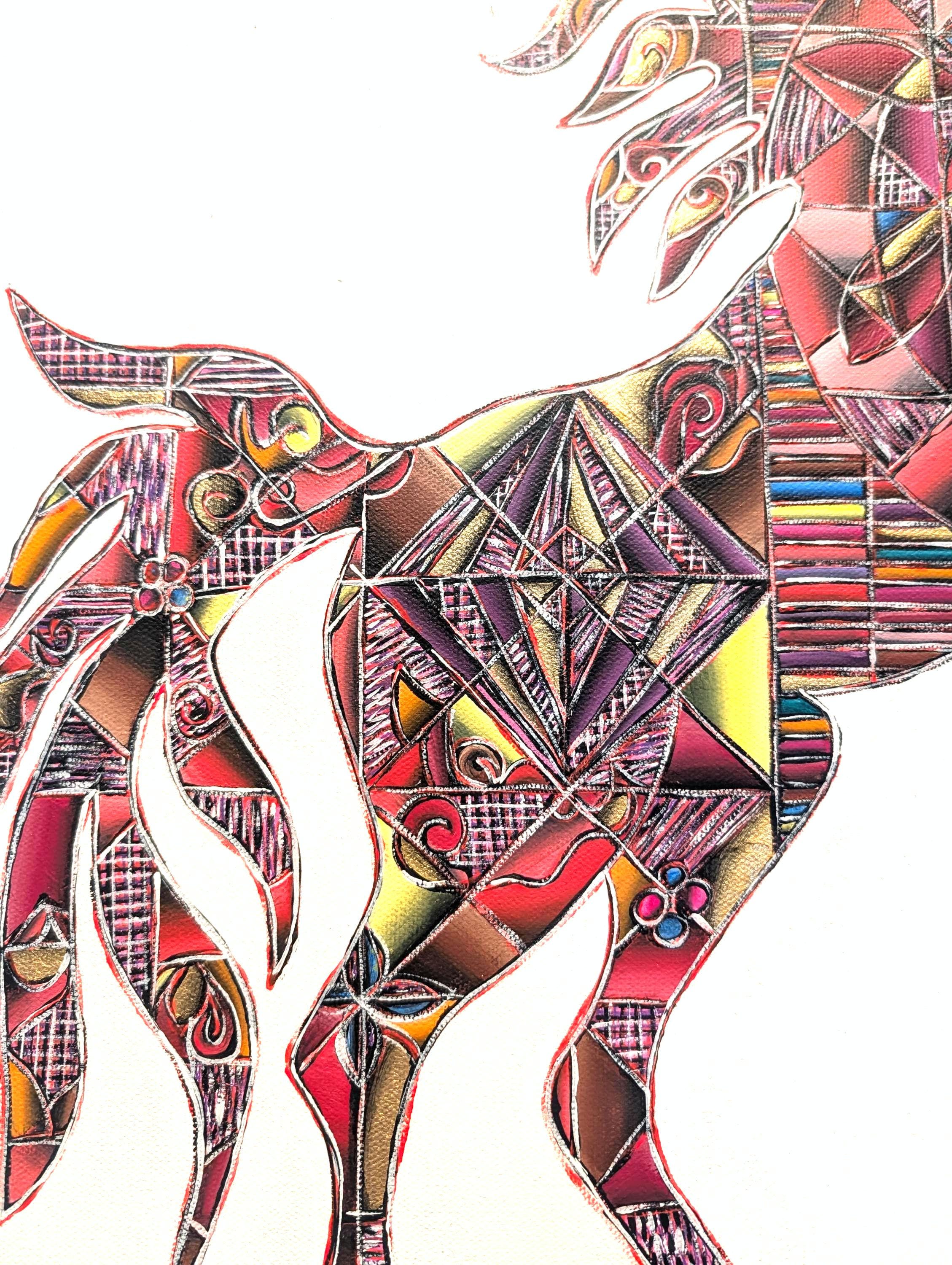 Introducing Fire Horse 2026, a dynamic celebration of the Fire Horse’s energy: bold vitality, fearless motion, and radiant optimism. This piece fuses intricate geometric mosaics with a blazing palette to capture the horse’s unstoppable momentum and fiery spirit for the year ahead.